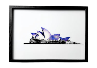 Minimalist Sydney Opera House wall art with subtle violet tones and clean architectural detail. A calm and elegant landmark study.